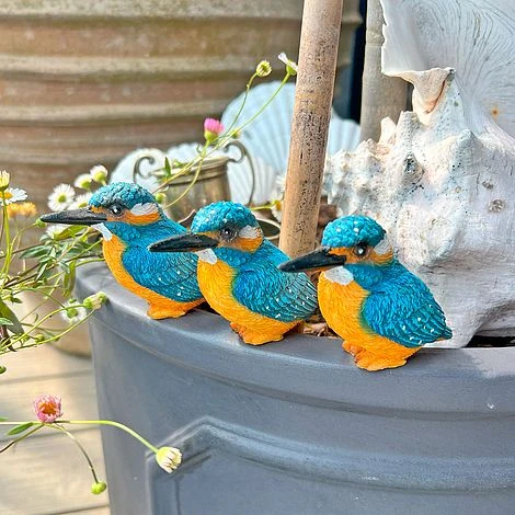 3 Pot Topping Kingfisher Bird Garden Ornaments