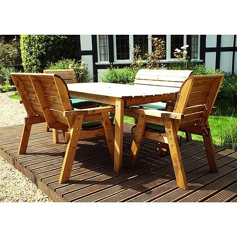 6 Seater Rectangular Table Set with Benches: The 6 Seater Rectangular Table Set with Benches is an ideal dining set for a family keen on dining alfresco. The 6 Seater Rectangular Table Set with Bench is made of Scandinavian Redwood which is a beautiful and durable wood resistant to decay and disease. It is fully treated for your peace of mind. The generously sized and sturdy seats of both chairs and benches come with a set of cushions in any one of three attractive colours. The set also includes a parasol with its base and a storage bag for the cushions. Gather your loved ones and share a pitcher of margaritas, finger food, dinner, or Sunday roast amid your lovely garden. No matter the moment, the 6 Seater Rectangular Table Set with Benches Set is sure to enhance your outdoor space with its traditional design and its rustic charm of natural wood.Please note that uses the White Glove bespoke delivery and assembly service.
