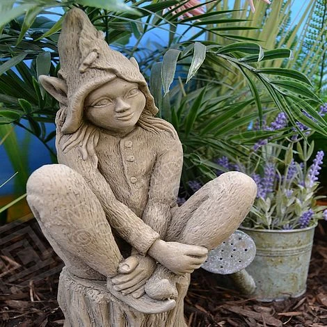 This expertly detailed creation has been sculptured taking its main inspiration from nature. Foxglove is perched upon a lifelike log, providing weight and stability. With a unique and textured outfit and strikingly realistic features, this eye-catching elf is a perfect addition for any hidden corner in your garden or home.
