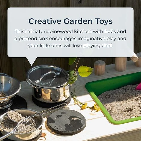 A mud kitchen is a perfect way to foster a love for outdoor play. When gathering ingredients for mud pies, your child will be encouraged to explore and interact with nature.