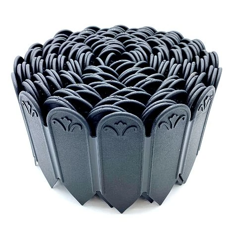 Stylish, flexible and easy to use lawn edging for enhancing lawns, garden borders, drives, paths, flower beds & vegetable patches. This edging is ideal for tidying up patios, paved and outdoor spaces, providing a neat and even edge to separate grass, soil and gravel. Our edging rolls have spiked bottoms for easy installation – simply insert into ground and secure with a rubber mallet or similar. They can also be cut to size with scissors for use in multiple locations. They can even be used to make raised beds to grow fruit, vegetables and other crops! This 10 metre roll can be used for straight lines or curves of up to 90° angle. Fully weatherproof and UV protected.
