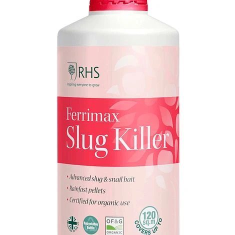 These organic RHS Ferrimax slug killer pellets will protect your plants, crops and seedlings against damage by slugs. The active ingredient is naturally obtained ferric phosphate, which is Organic Farmers & Growers Certified and is harmless to other wildlife, humans and the environment. Ferrimax slug pellets are rain resistant and are ideal for use on bare ground, around all outdoor plants (edible and non-edible), and in the greenhouse. Simply sprinkle the pellets evenly on the area you want to treat at approximately 5g per square metre.