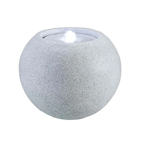 The sandstone sphere features a bubbling fountain in the top. The water pumps upwards to create the fountain and the LED lights create a stunning effect to be admired at night creating a wonderful centrepiece for your garden or patio.