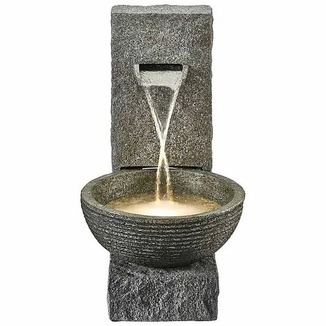 Create a beautiful focal point in your garden or courtyard with this stone-effect cascading bowl water feature from Serenity. The water feature is designed to look like a stone water feature, but is constructed from polyresin to offer a more lightweight and durable alternative. It will excite your eyes and ears as you listen to the gentle trickle of water hitting the bowl.