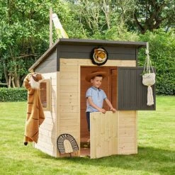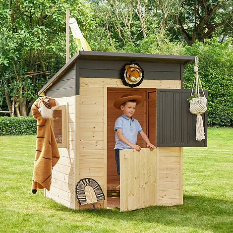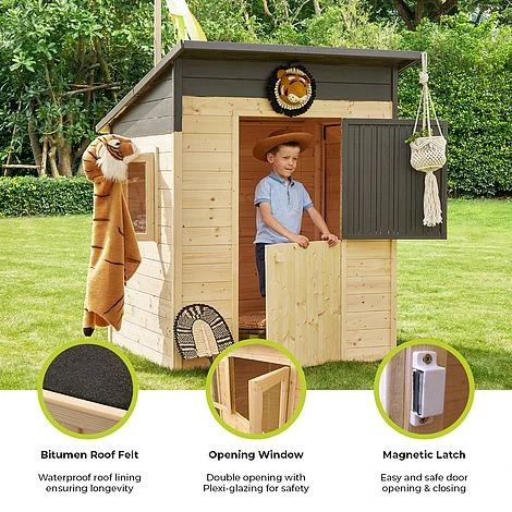 The Santa Monica playhouse tries to replicate the beach experience in your kids’ own garden. This Soulet playhouse, which was inspired by seaside cabins, has an internal surface area of 1.35 m2 and a flat roof with a single slope. It has a reinforced floor, a plexi window, and a closed door that provide plenty of room for play and garden exploration. It is intended to house 2 kids at once. Its distinctive design, which claims larger height and door size compared to other models, will enchant kids and ensure longer periods of outdoor play.