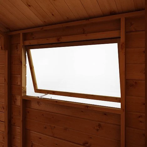 Featuring two fixed and two opening Styrene glazed windows this workshop is super light. Creating a bright and welcoming internal space. The ideal conditions for working on your latest DIY project. The vast size of the interior is perfect for installing workbenches and additional tool storage. Whilst a large set of double doors provide easy access to your workshop and your belongings. Allowing you to create the ultimate workshop for your needs.