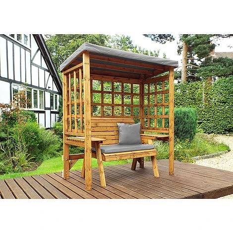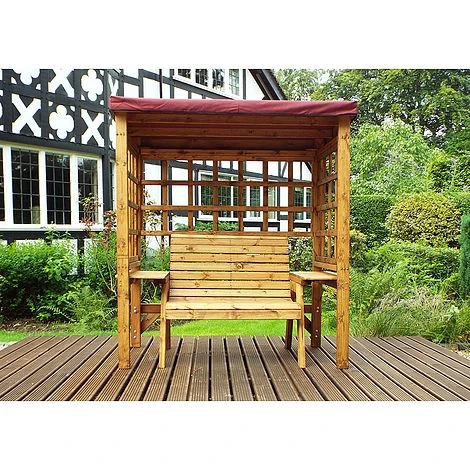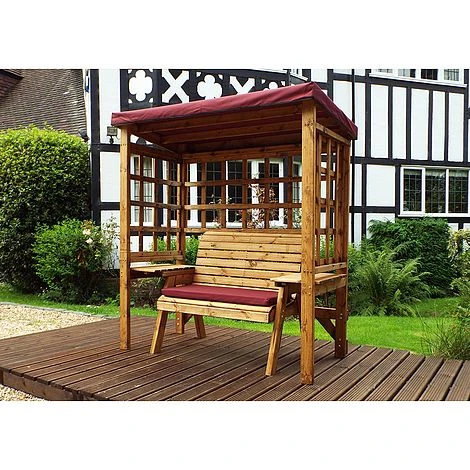 Wentworth 2 Seat Arbour: The Wentworth 2 Seat Arbour is ideal for people who seek a calming garden experience and are attracted to the natural beauty of wood. This gorgeous garden item boasts a trellis on three sides that wraps around a removable bench with tray tables on both sides. The Arbour is made of Scandinavian Redwood which is a beautiful and durable wood resistant to decay and disease. It is fully treated for your peace of mind. The arbour comes with a canvas canopy cover in any one of three attractive colours to protect you and your loved one from harmful UV rays or light rain. The Wentworth 2 Seat Arbour is so well made that you can keep it bare, but if you are a romantic you can always benefit from the trellises which are ideal for climbing plants of all kinds so to create a shading and perfumed garden seat. Have a moment of solitude to meditate, relax reading your favourite book, or reflect on life with your loved one cocooned among climbing plants and flowers that can enrich your experience with shade and floral scent.